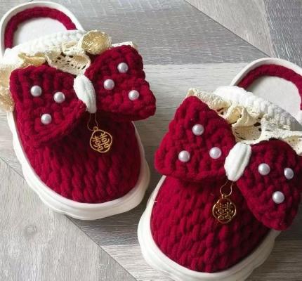 纯手工勾的棉拖鞋,看图