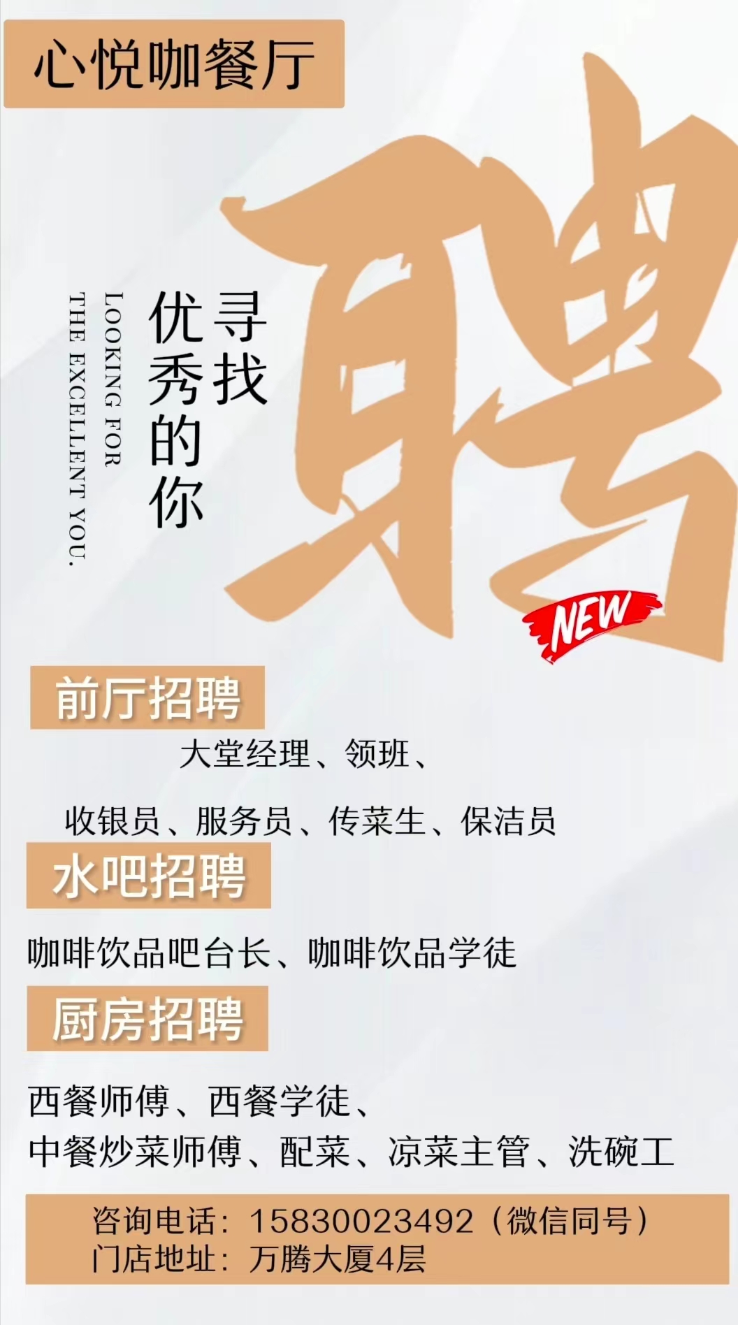 《心悦咖餐厅》诚聘多岗位员工!
