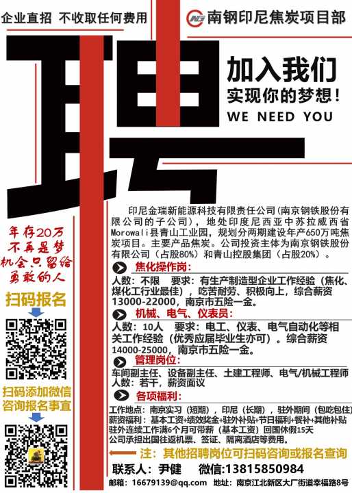 南钢海外印尼焦炭项目,诚邀您的加入!