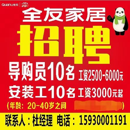 诚聘 安装工数名